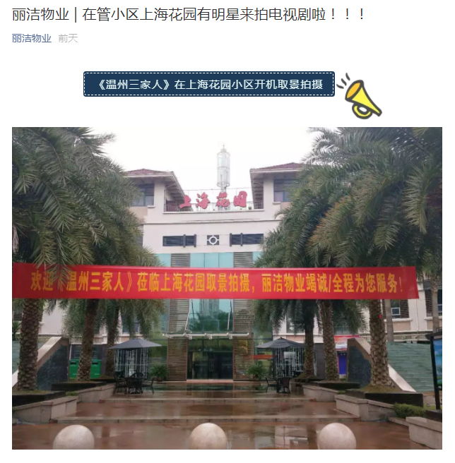 麗潔物業|在管小區上海花園有明星來拍電視劇啦!!!