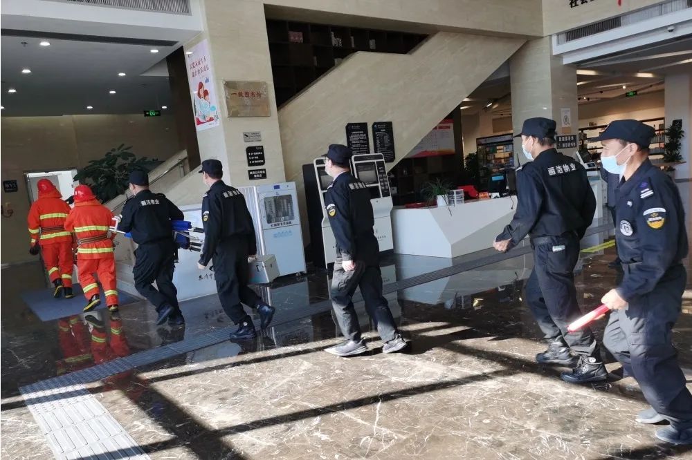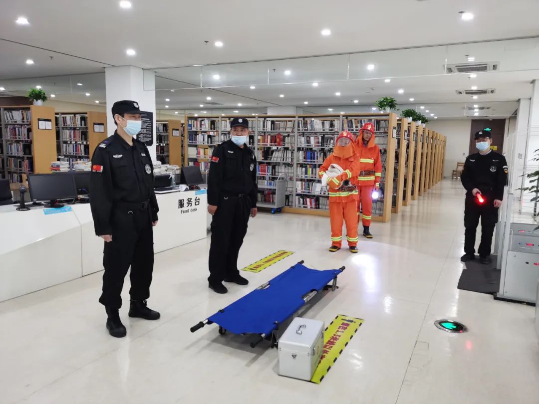 演練當(dāng)日,公司秩序部負(fù)責(zé)人提前多時(shí)抵達(dá)現(xiàn)場,協(xié)助圖書館物業(yè)經(jīng)理、秩序隊(duì)員、消控人員對場館內(nèi)各處消防設(shè)施設(shè)備運(yùn)行情況進(jìn)行仔細(xì)檢查。指揮麗潔工作人員進(jìn)行多次現(xiàn)場模擬走位,并制定出最佳救援及逃生路線。
